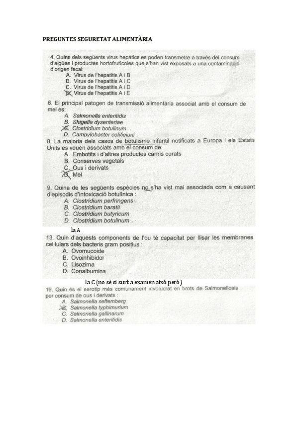 He publicado nuevos examenes de 4º Seguridad Alimentaria y Zoonosis: Examens seguretat alimentària