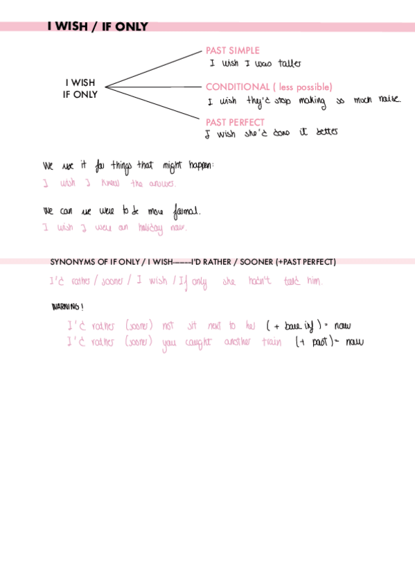 Contenido: - I wish / if only * synonyms - Preferences - 4 ways to write a sentence in the passive - Vocabulary