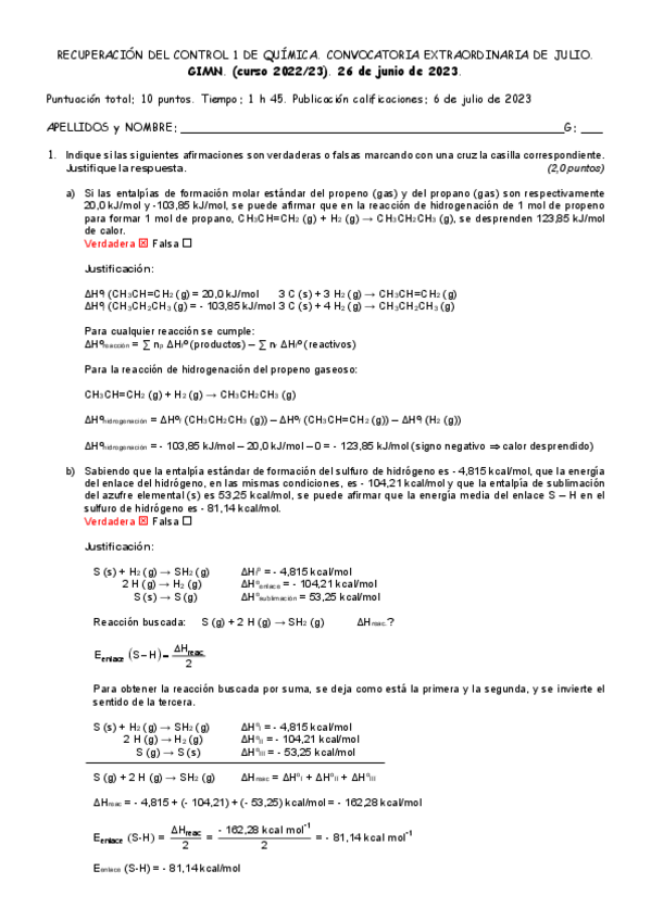 He publicado nuevos examenes de 1º Química: Quimicaenero2223soluciones.pdf