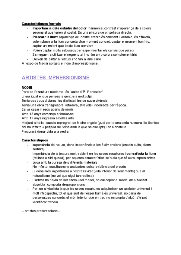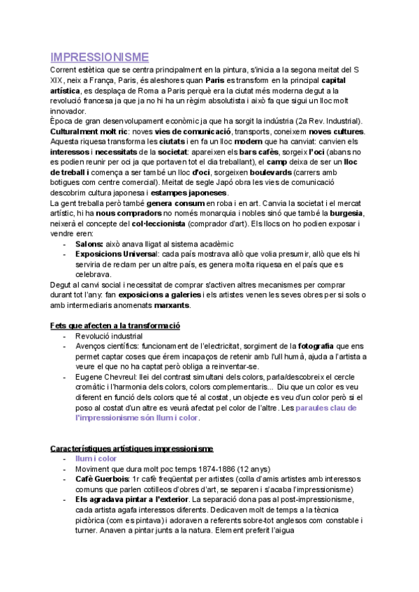APUNTS - IMPRESSIONISME - FONAMENTS DE LES ARTS