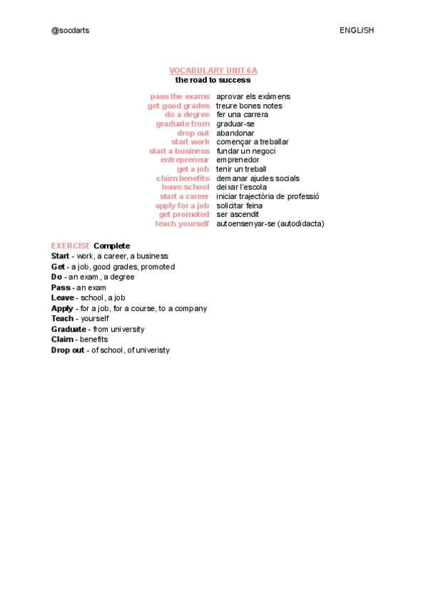 Teniu apunts d'english al meu perfil Vocavulari traduit al català Inclou exemples i exercicis ;)