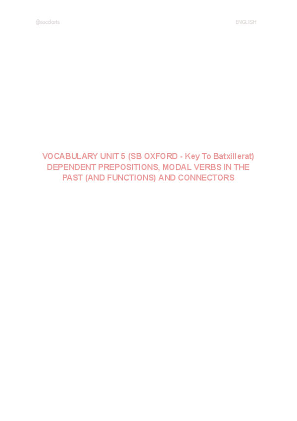 VOCABULARY UNIT 5 (SB OXFORD - Key To Batxillerat) DEPENDENT PREPOSITIONS, MODAL VERBS IN THE PAST (AND FUNCTIONS) AND CONNECTORS