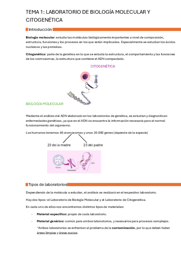 Apuntes útiles para la asignatura de biología molecular, parte del laboratorio de citogenética y cultivos celulares, sus equipos, sus salas y su estructura