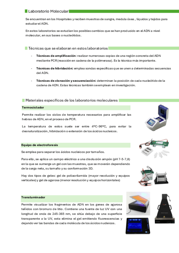 Apuntes útiles para la asignatura de biología molecular, parte del laboratorio de biología molecular, sus equipos, sus salas y su estructura