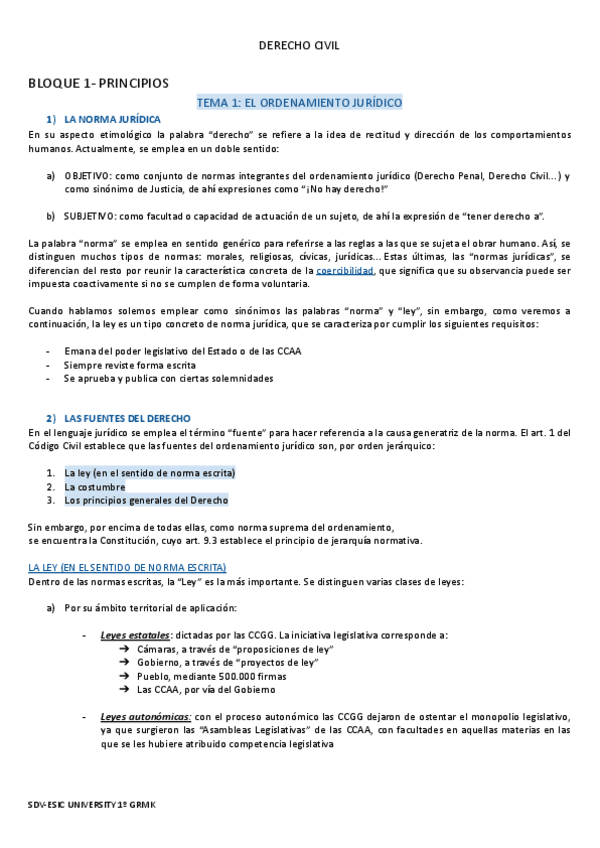 Apuntes de primero de carrera ESIC (GRMK) "DERECHO CIVIL" del T1 al T6