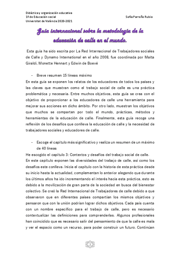 Estudios: Grado en Educación Social (UV)