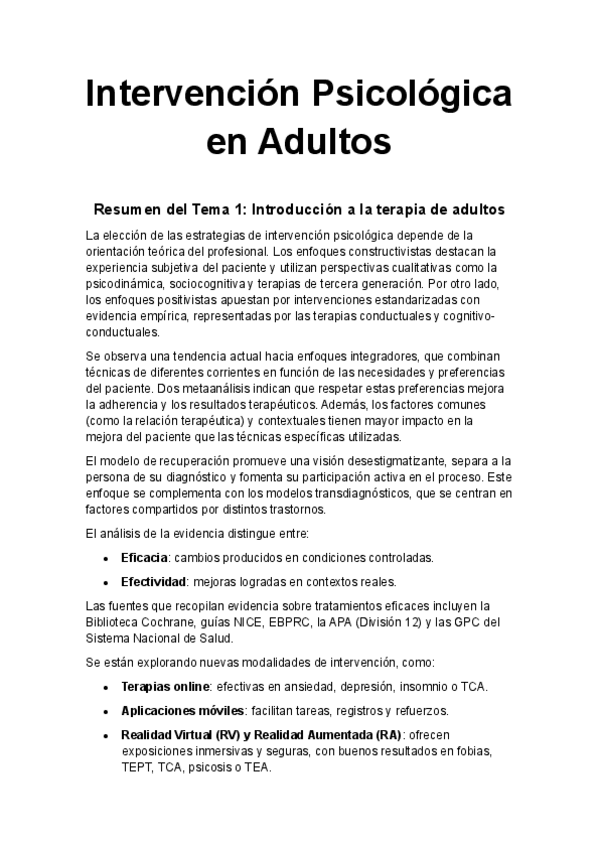 Resumen 10 temas de Intervención Psicológica en Adultos