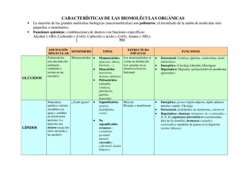 He publicado nuevos apuntes de 1º Biología Celular y Genética Básica: cuadro biomoleculas.pdf