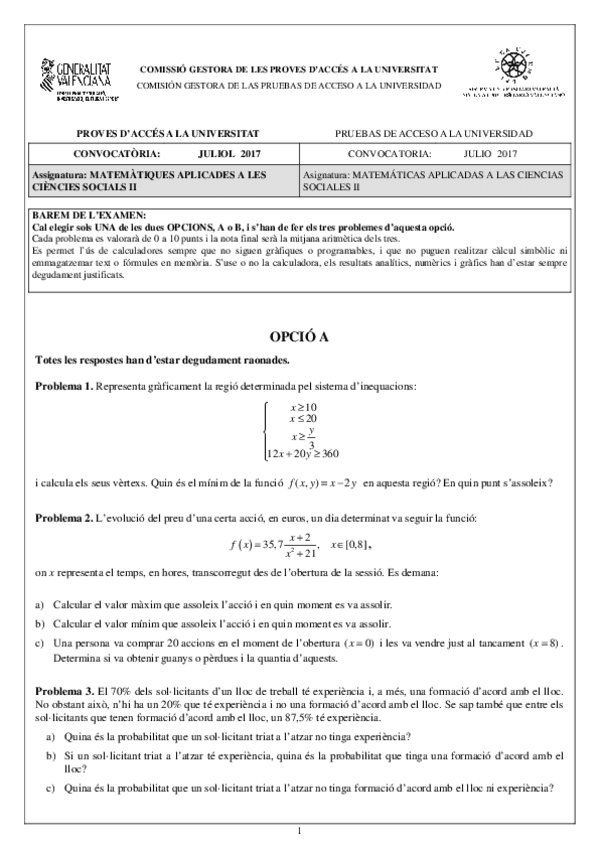 EXAMENES PAU MATES CCSS