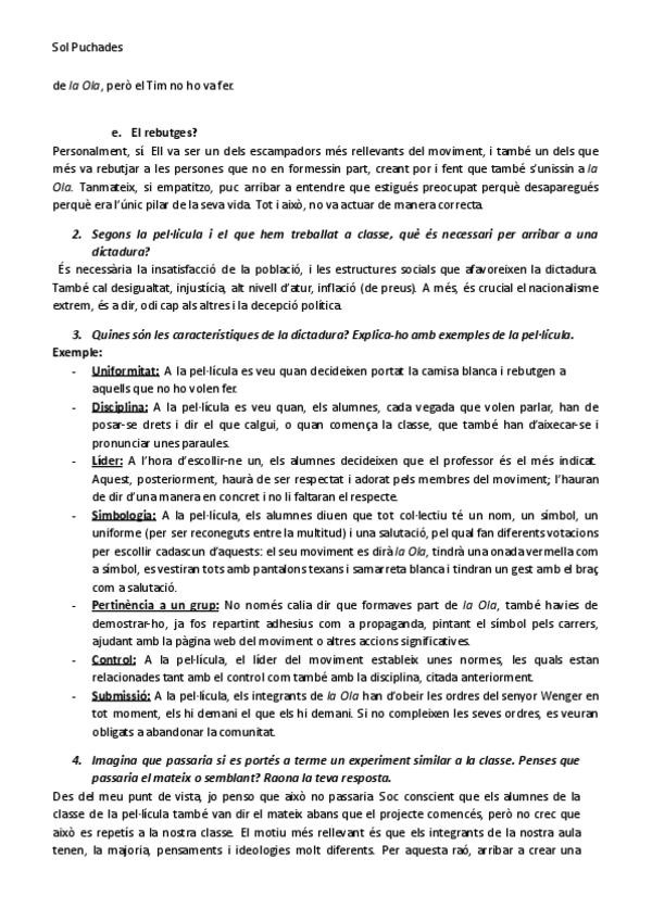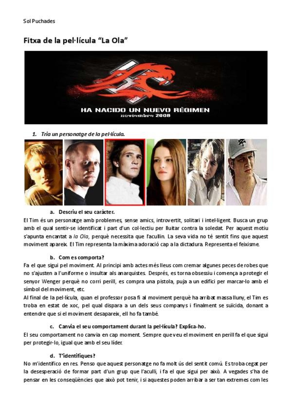 Anàlisi i reflexió personal de la pel·lícula "La Ola". Contingut propi en català. Relació amb el nazisme i l'holocaust.