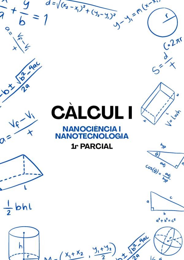 Apunts de Càlcul I (primer parcial), dividits en tres documents corresponents als tres temes principals. Estan elaborats a partir de la teoria explicada a classe pel professor i inclouen alguns comentaris afegits per mi.