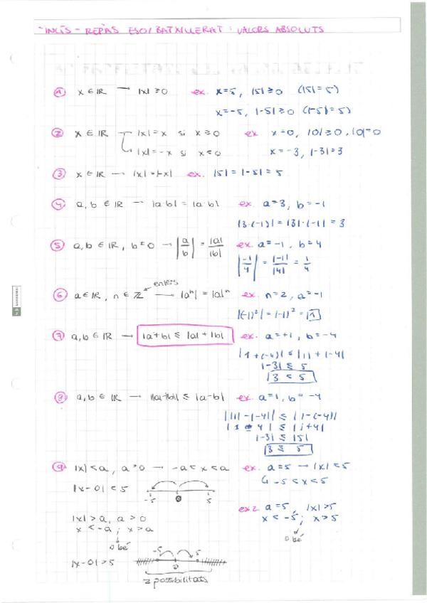 Full d’apunts sobre les propietats del valor absolut, fet per mi. És un repàs breu d’un contingut que es dona per sabut a classe, però que pot ser necessari de cara al primer parcial.