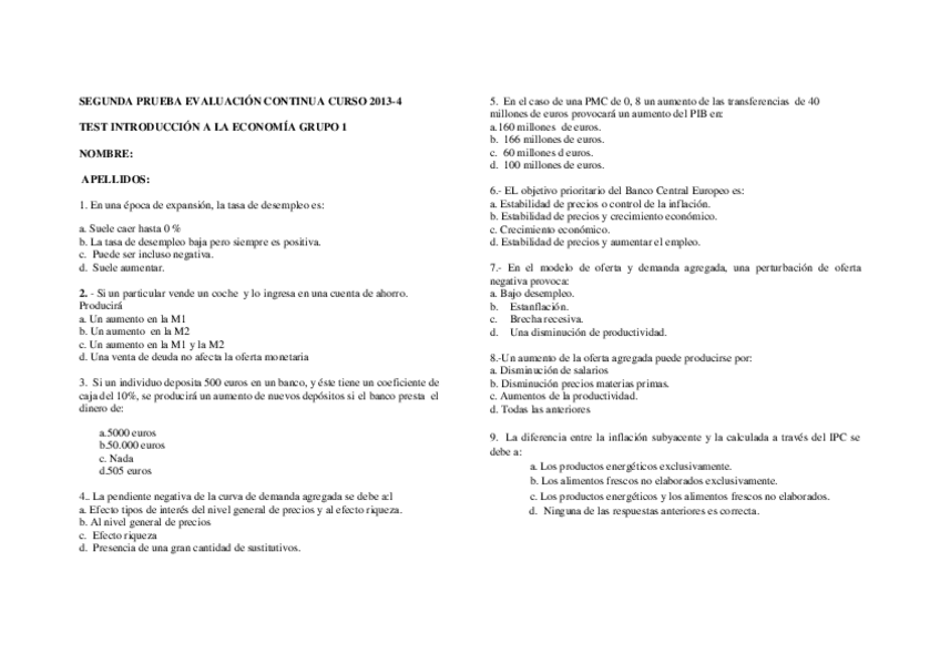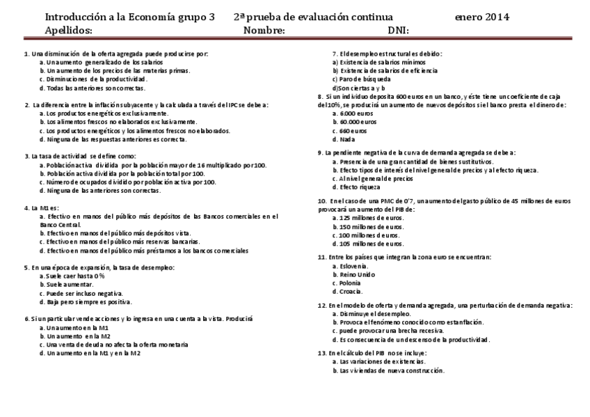 He publicado nuevos apuntes de 1º Introducción a la Economía: Examenes