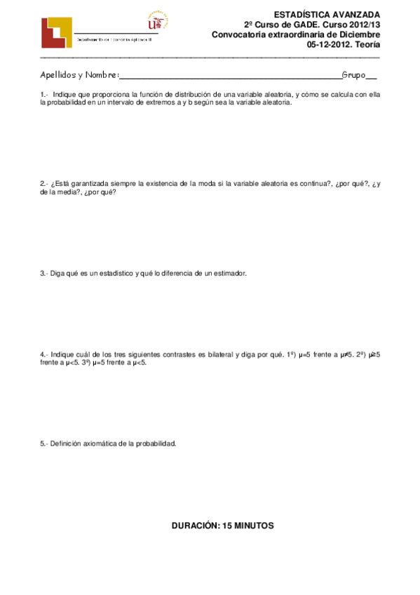 He publicado nuevos examenes de 2º Estadística Avanzada: Exámenes