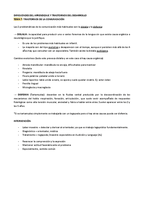 APUNTES DIFICULTADES APRENDIZAJE Y TRASTORNOS DEL DESARROLLO