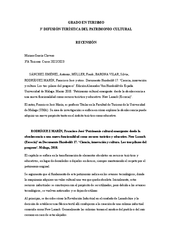He publicado nuevos trabajos de 3º DIFUsión turística del patrimonio cultural: RECENSION.pdf