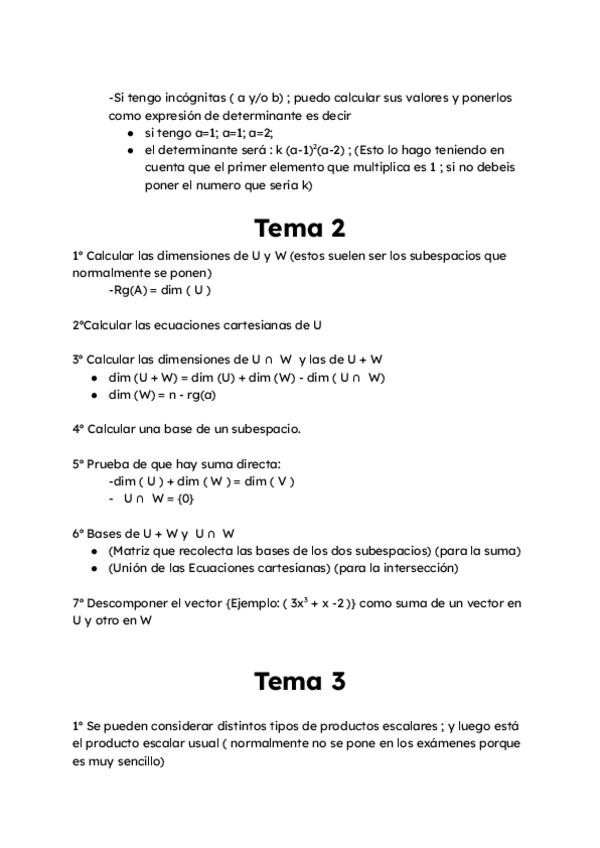 Dos ejercicios de los mas complicados han salido en examenes ; del tema 1 , Algebra Lineal. Son respuestas hechas y corregidas con Gemini ; asi que es fiable, se hace de una forma mas sencilla a la correccion del profesor