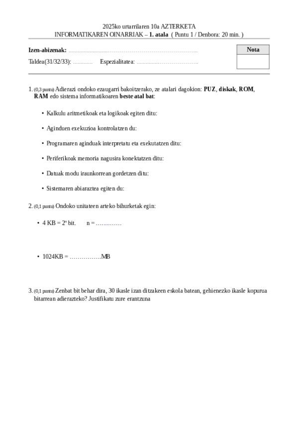 Informatika 2024/25 urtarrileko azterketa ebatzia. Pdf batean enuntziatua eta bestean soluzioak.