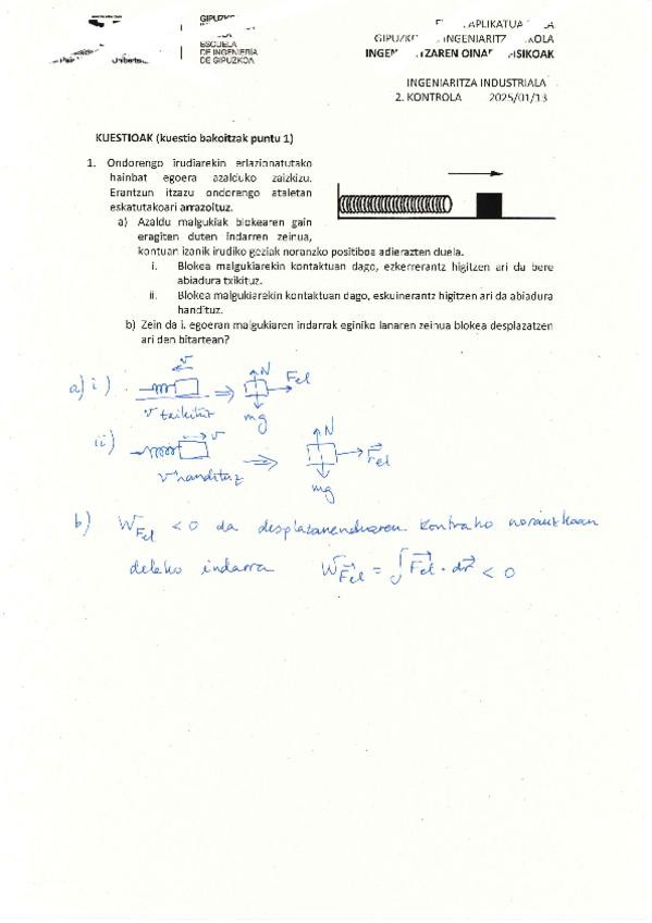 Fisika 1.kontrola 2023 EBATZITA. Donostiako ingenieritza eskola.