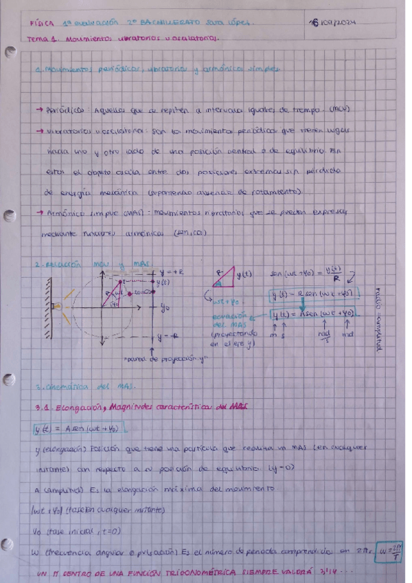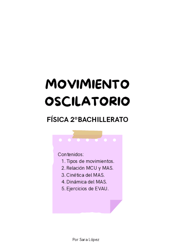 Apuntes con ejercicios del tema 1 de Física II Movimiento ondulatorio (MAS, Muelle...). Espero que os ayude! :)