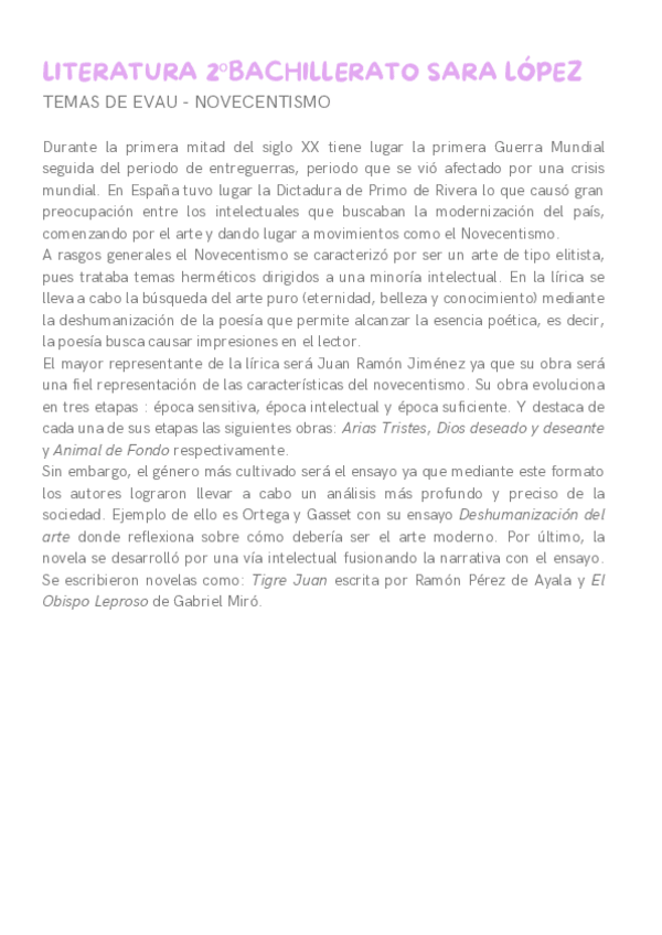 Siguiente epígrafe de literatura de segundo de Bachillerato, Novecentismo. Con esta extensión es suficiente para la PAU. Los apuntes están corregidos por mi profe del año pasado, espero que os sirvan !!