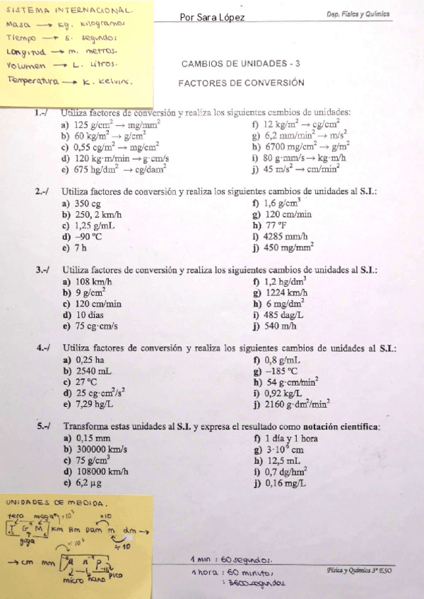 Ejercicios con solución de factores de conversión. Nivel: 3ºESO