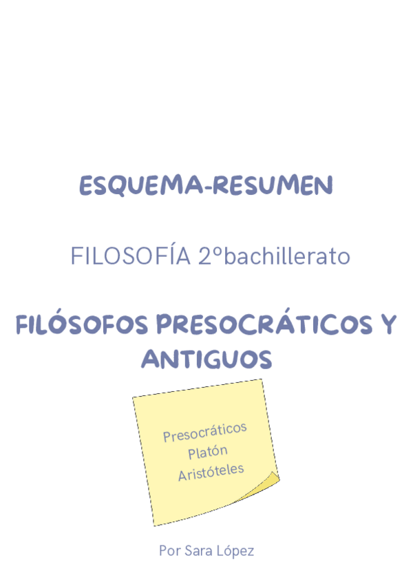Esquema resumen de filósofos presocráticos y antiguos, va genial para tenerlo todo resumido y poder trabajar sobre ello.