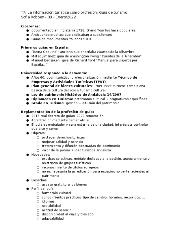 Bio: Me gradué en Turismo en la UMA y en master de Dirección y Negocios Internacionales en CUNEF Mis apuntes están muy resumidos, los recomiendo como "puntos clave".