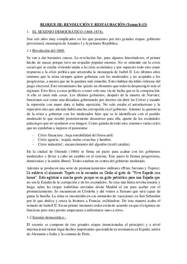 He publicado nuevos apuntes de 3º Historia de España Contemporánea: Apuntes por Bloque