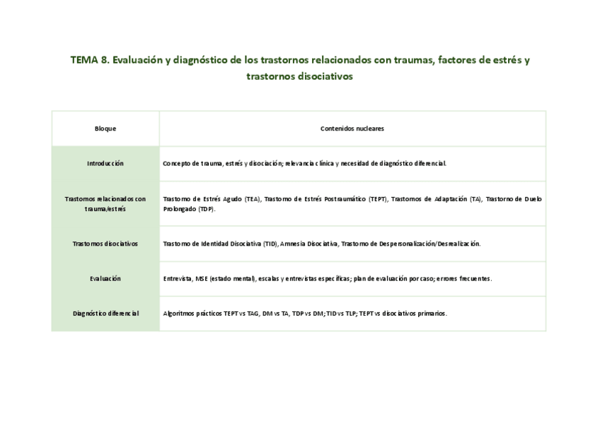 Temario de examen en formato esquema/tabla.