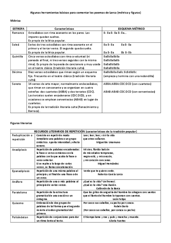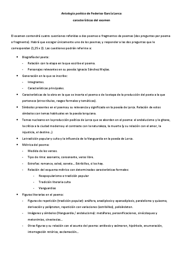 Tres exámenes de poemas de Lorca con sus respectivas cuestiones. El solucionario se encuentra en mi perfil