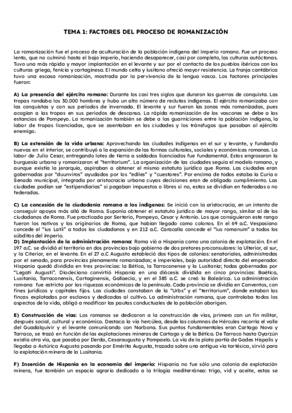 Historia de España. Tema 1: Factores del proceso de romanización. Segundo de Bachillerato. PAU Murcia