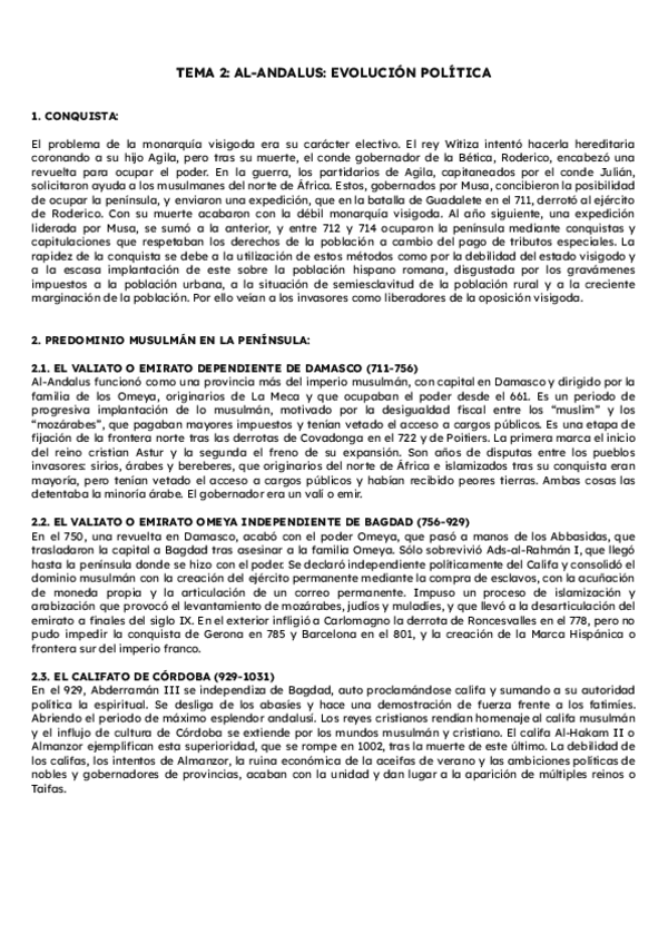 Historia de España. Tema 2: Al-Andalús: Evolución política. Segundo de Bachillerato. PAU Murcia