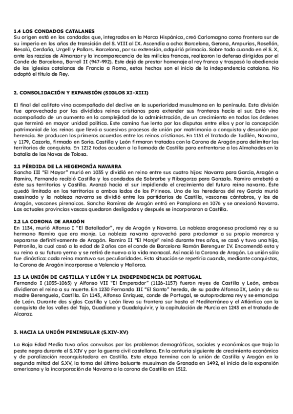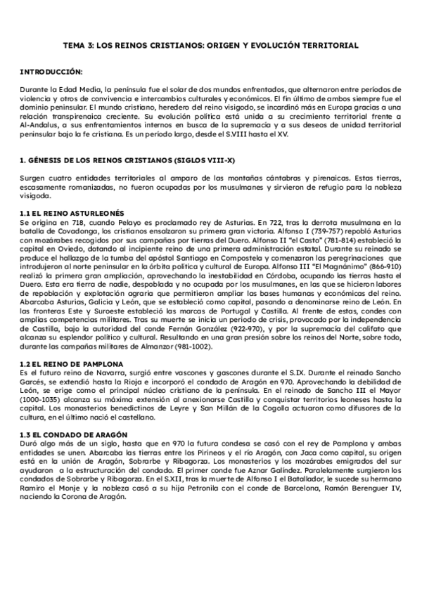 Historia de España. Tema 3: Los reinos cristianos: orígenes y evolución territorial. Segundo de Bachillerato. PAU Murcia.