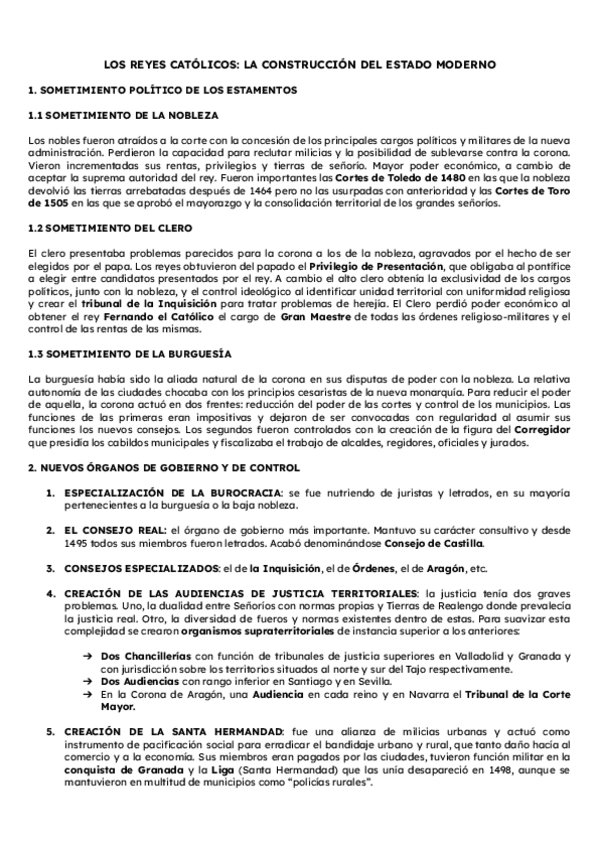 Historia de España. Tema 5: Los Reyes Católicos: la construcción del estado modrno. Segundo de Bachillerato. PAU Murcia
