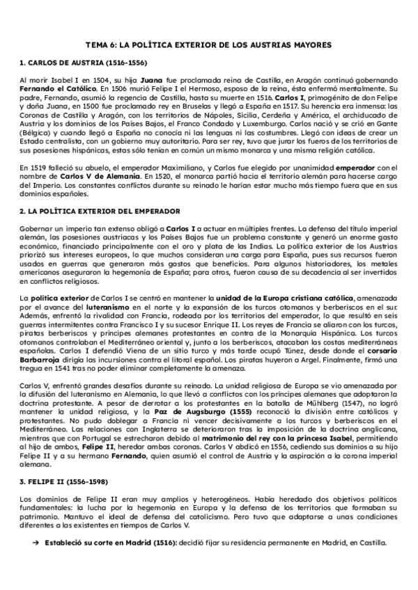 Historia de España. Tema 6: La política exterior de los Austrias Mayores. Segundo de Bachillerato. PAU Murcia