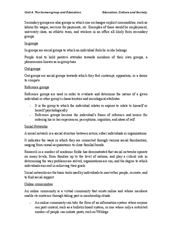 He publicado nuevos apuntes de 1º Sociología de la Educación: Unit-4.-The-human-group-and-Education.pdf