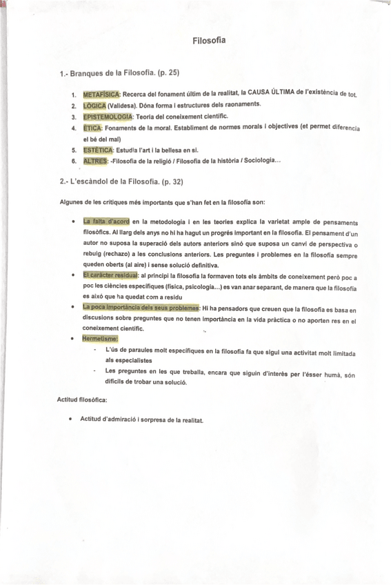 Apuntes resumidos de Filosofía para Bachillerato completo para examen.