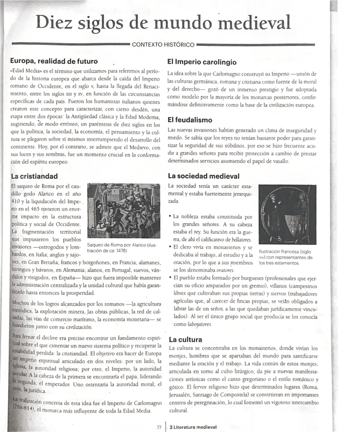 Apuntes de literatura medieval universal, contexto histórico + EXAMEN para bachillerato. Más en mi perfil.