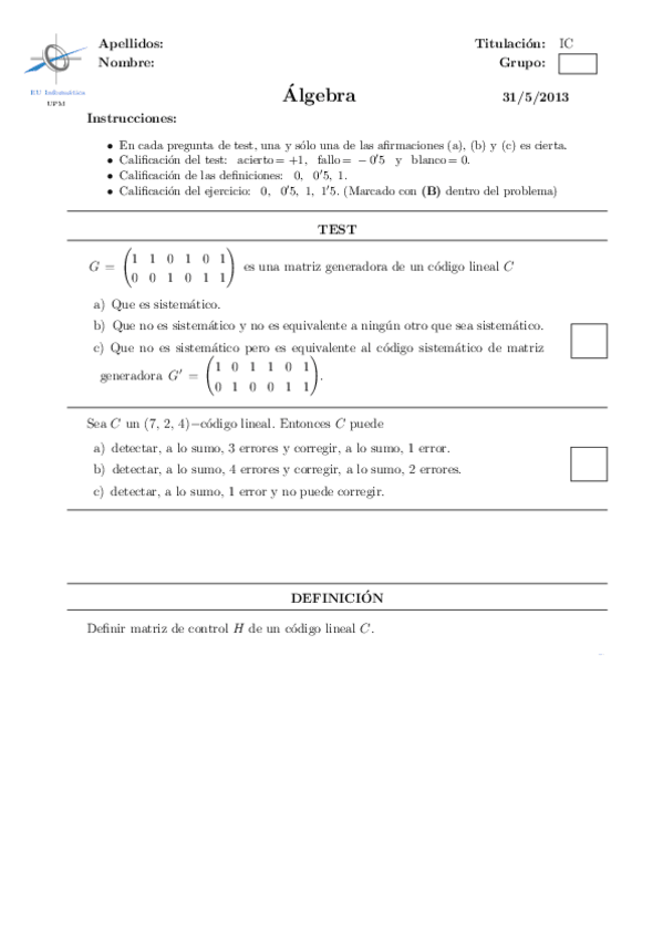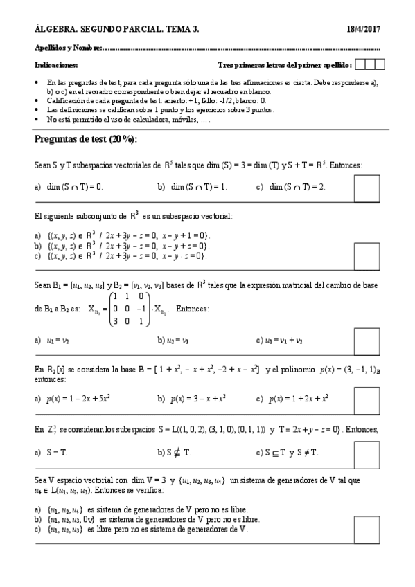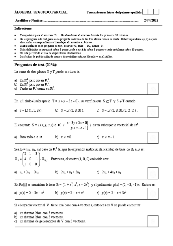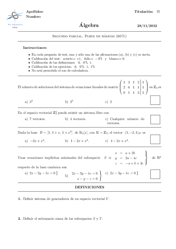 He publicado nuevos examenes de 1º Álgebra: segundos parciales en blanco