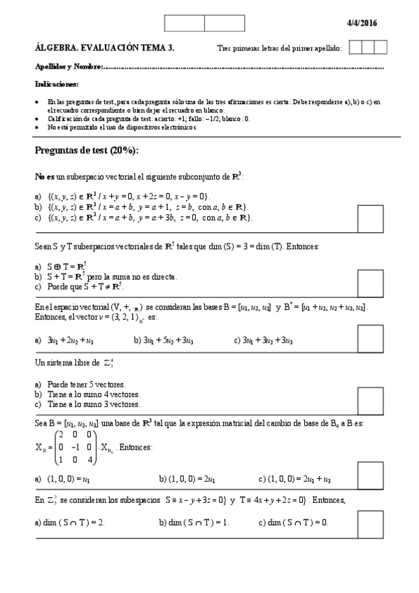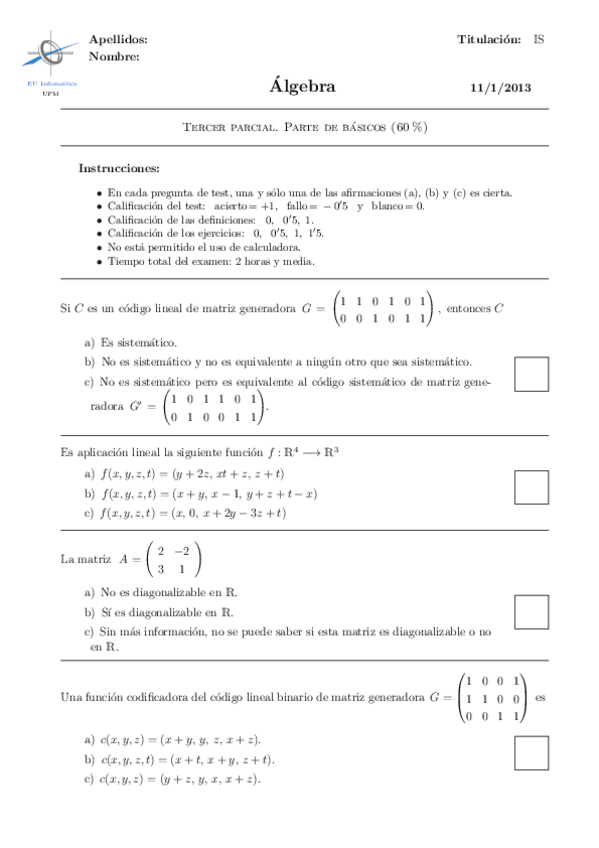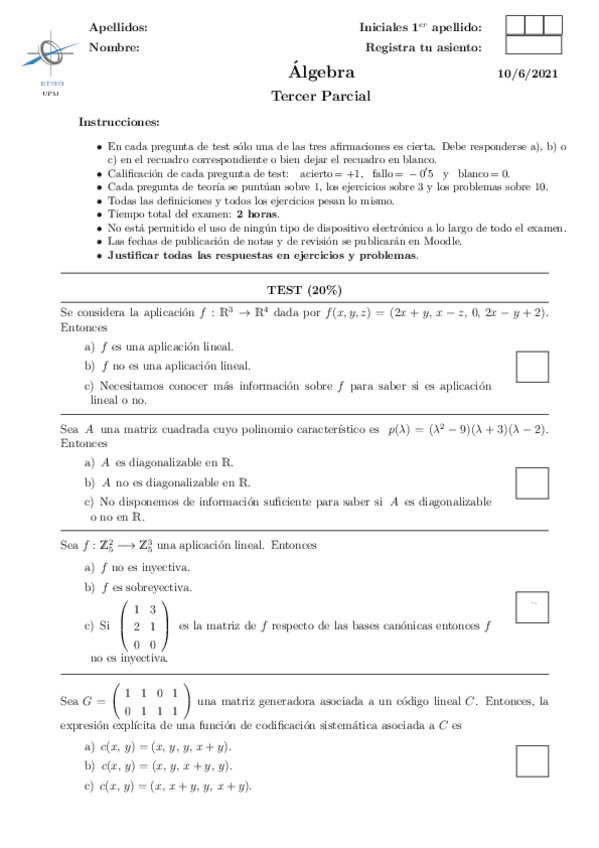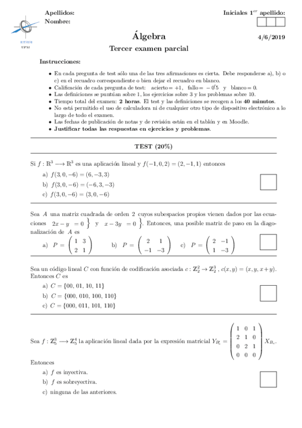 He publicado nuevos examenes de 1º Álgebra: terceros parciales en blanco