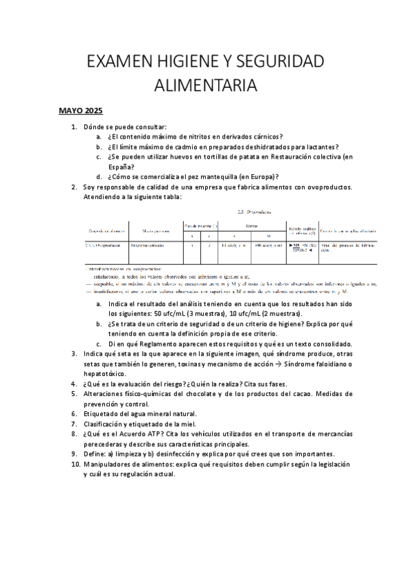 Preguntas Examen Mayo 2025 Higiene y Seguridad Alimentaria 3ºUCM