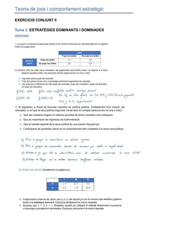 He publicado nuevos ejercicios de 2º Teoría de Juegos y Conducta Estratégica: Exercicis-temes-3-6.pdf