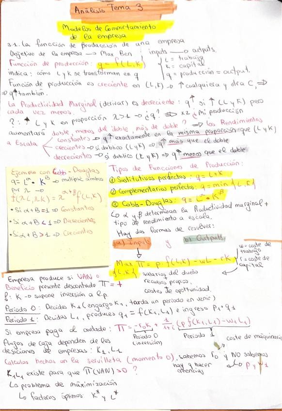 Resumen del tema 3 de la asignatura Análisis económico I, basado en el guión, presentación y con ejercicios resueltos.