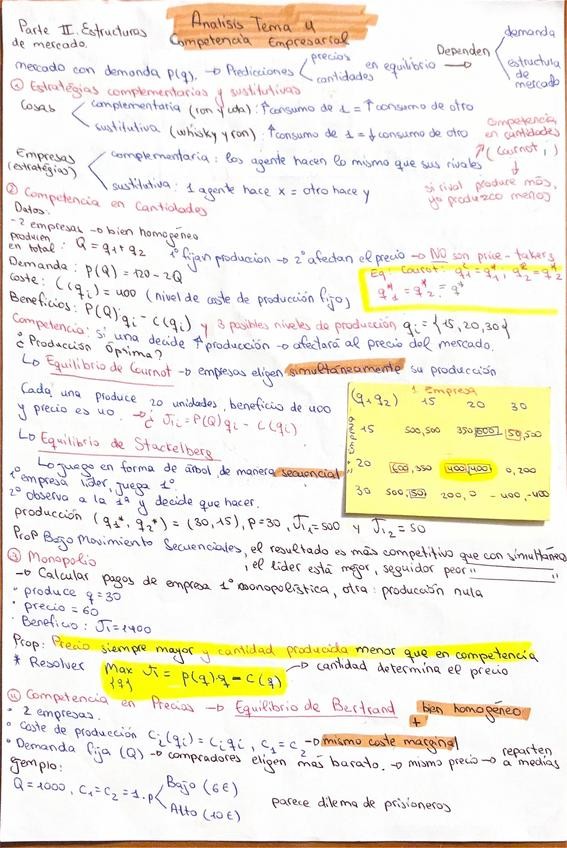 Resumen del tema 4 de la asignatura Análisis económico I, basado en el guión, presentación y con ejercicios resueltos.