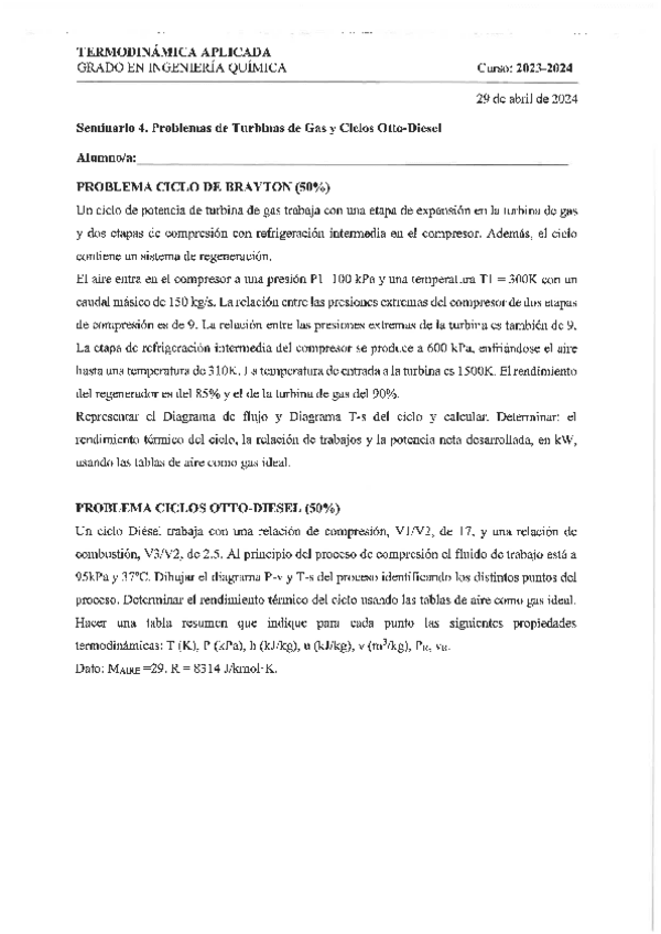 He publicado nuevos ejercicios de 2º Termodinámica Aplicada: Seminarios