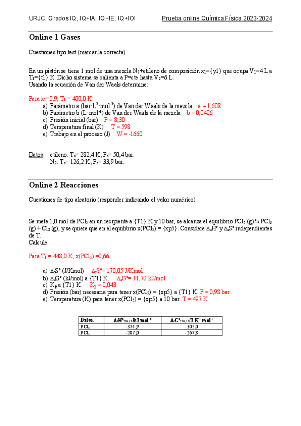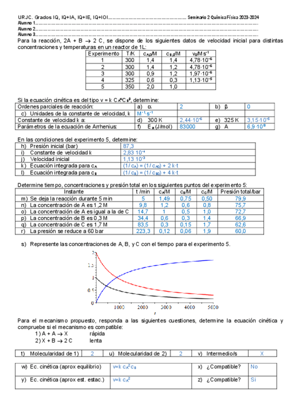 He publicado nuevos ejercicios de 2º Química Física: Seminarios