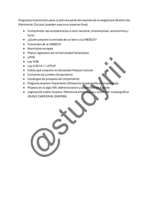 Posibles preguntas de examen de la primera parte de la asignatura. Aspectos en los que se hizo más hincapié y se señalaron como importantes.
