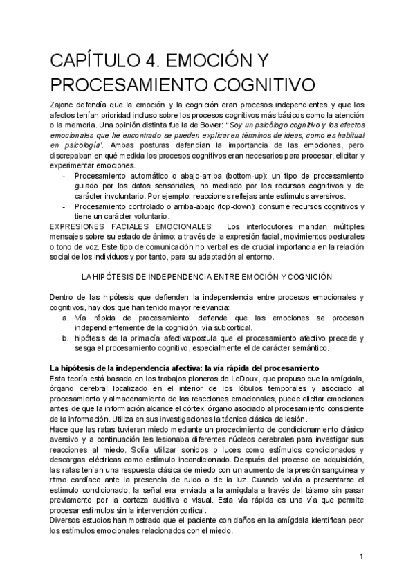 Psicología de la Emoción - Temario completo -