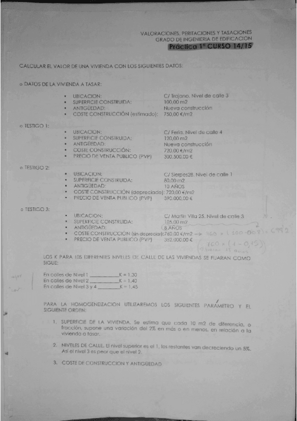 He publicado nuevos ejercicios de 4º Valoraciones, Peritaciones y Tasaciones: Valoraciones viviendas .pdf